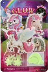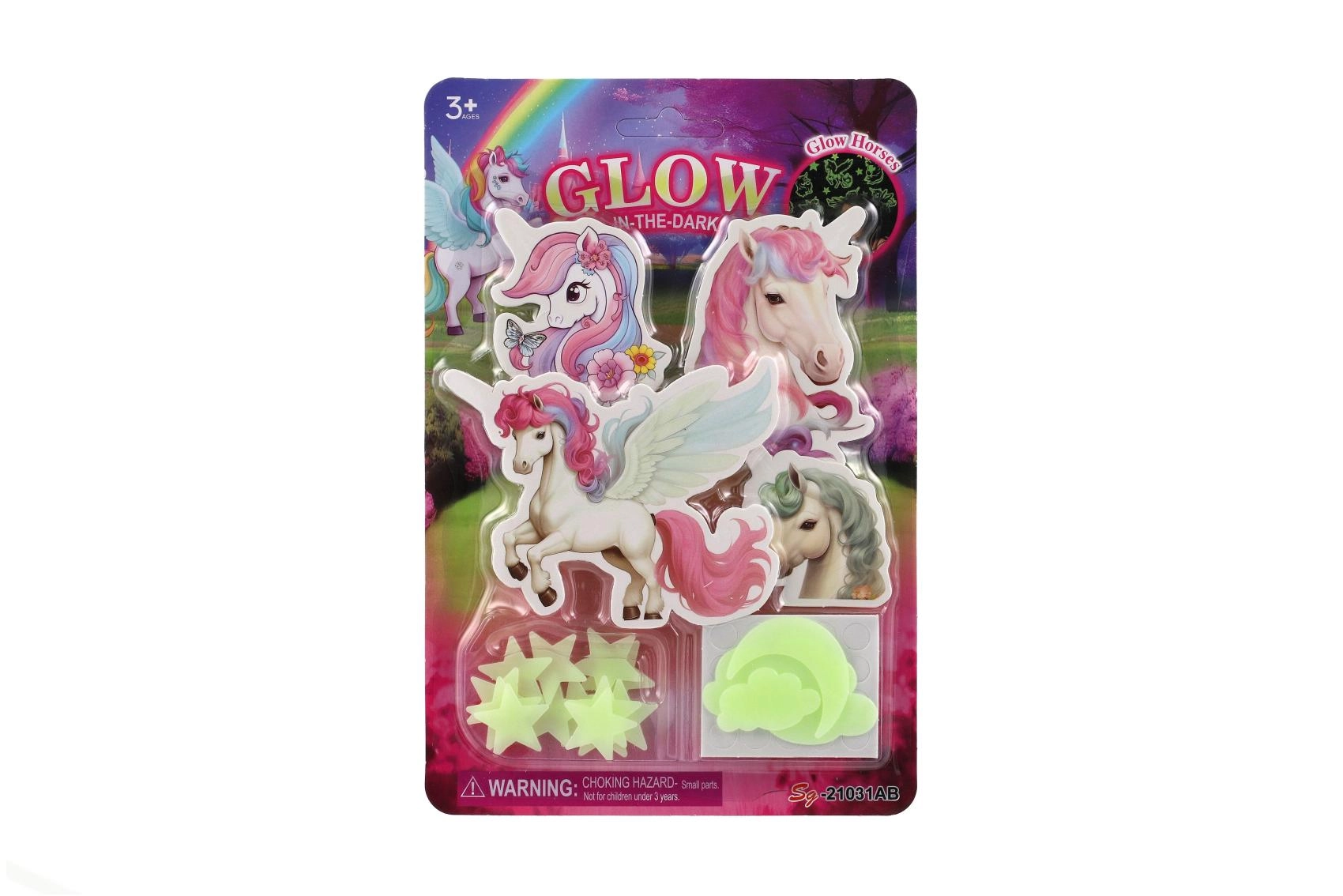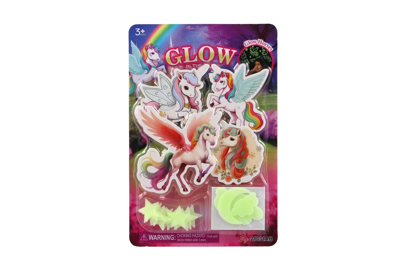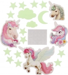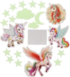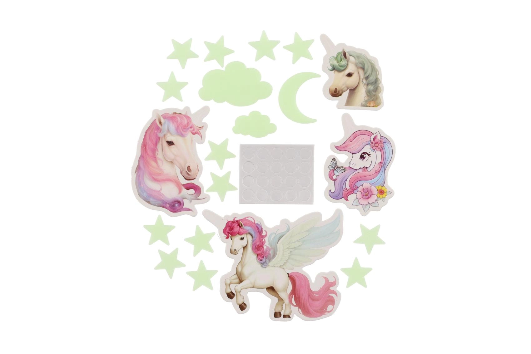 Create un mondo incantato direttamente nella stanza dei bambini. Gli unicorni luminosi, dopo essere stati esposti alla luce, si illuminano emanando un bagliore soffuso che rassicura e aiuta ad addormentarsi. Il set comprende unicorni di forme e dimensioni diverse per decorare creativamente pareti e soffitto.