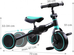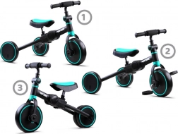 Tiny Bike 3in1 è una scelta ideale per i primi passi nel mondo delle due ruote. Grazie al design studiato, la trasformi facilmente in base all’età e alle esigenze del bambino – da cavalcabile stabile per i più piccoli, a triciclo con pedali, fino a bici di equilibrio per allenare l’equilibrio. Le trasformazioni si fanno senza attrezzi in pochi minuti.