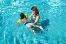 Grazie alle valvole robuste e alle due camere d'aria indipendenti, i braccioli si gonfiano facilmente, anche senza l'uso di una pompa. Le valvole speciali impediscono la fuoriuscita indesiderata dell'aria. Realizzati in vinile resistente e sicuro, offrono un elevato grado di comfort e sicurezza.