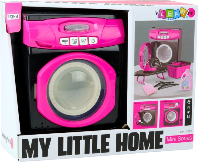 Oltre alla lavatrice, il set include ferro da stiro, asse da stiro, cesto per il bucato e altri accessori che permettono ai bambini di giocare a lavare, stirare e stendere i panni. Tutto è sicuro, realizzato con materiali di qualità e conforme alle norme europee.