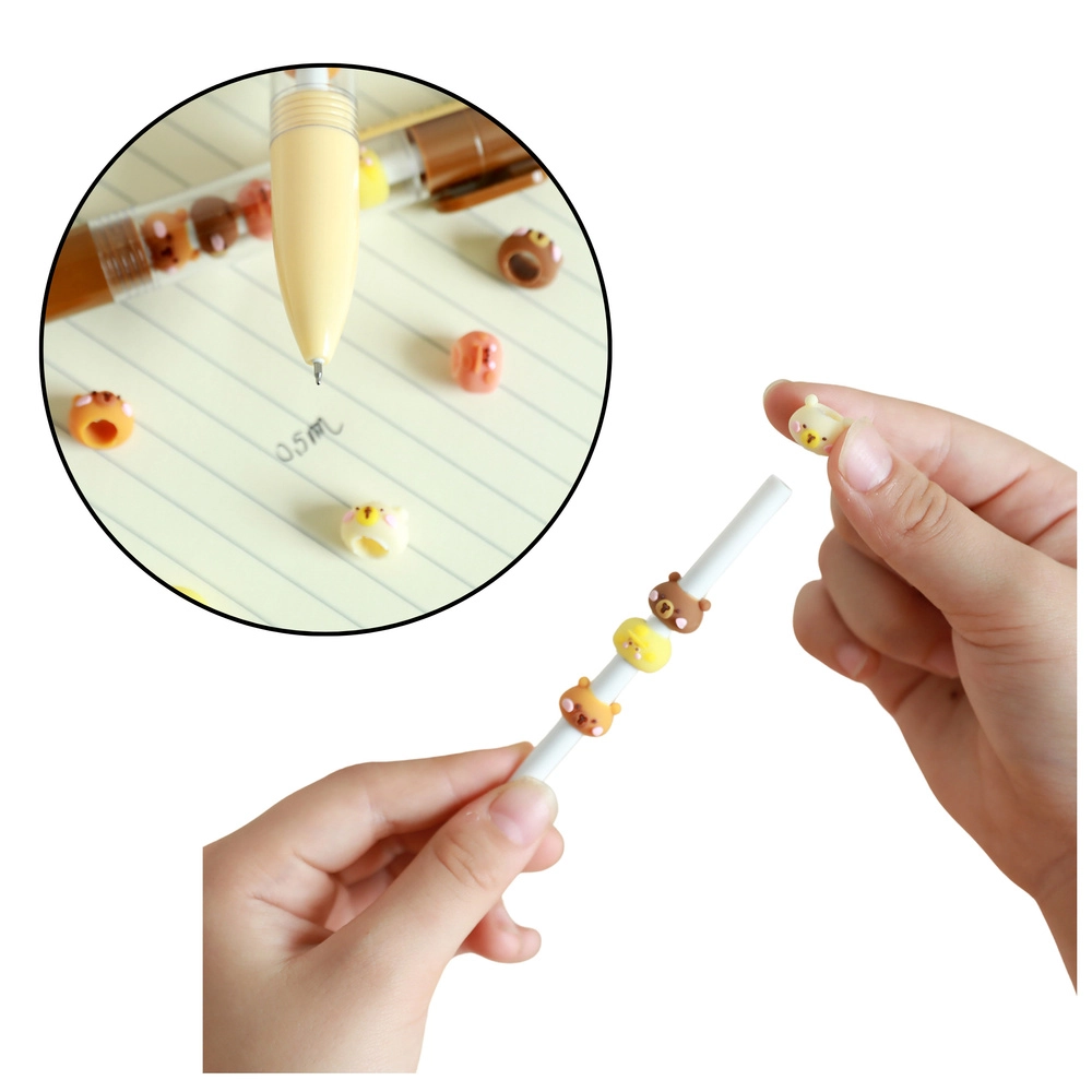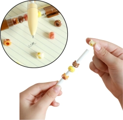 La penna con figurine di capibara non è solo uno strumento pratico per la scrittura quotidiana, ma anche un accessorio adorabile che attira l'attenzione e migliora l'umore. La figurina della capibara è posizionata in una camera trasparente della penna e può essere spostata, ruotata o riordinata a piacere. Il meccanismo di fuoriuscita della cartuccia è a clic, il che rende la penna facile da usare anche per i più piccoli.
