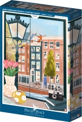 Scopri la serenità e la bellezza di Amsterdam dal comfort della tua caffetteria con questo puzzle da 500 pezzi. Ideale per il relax e il tempo libero.