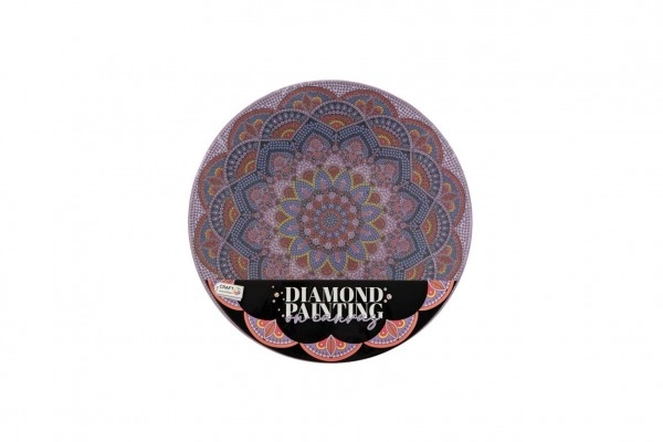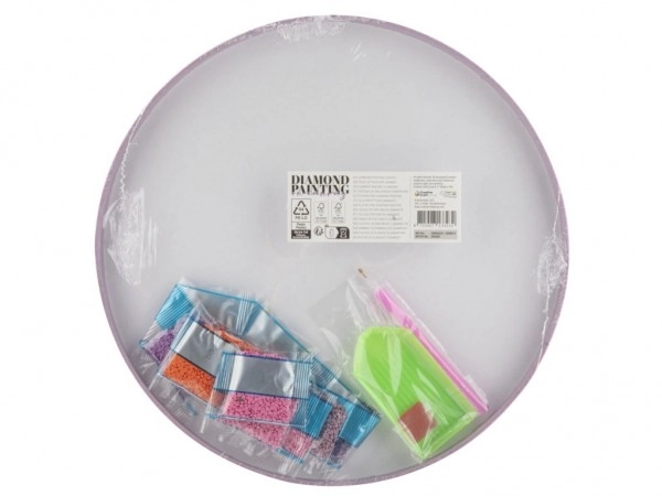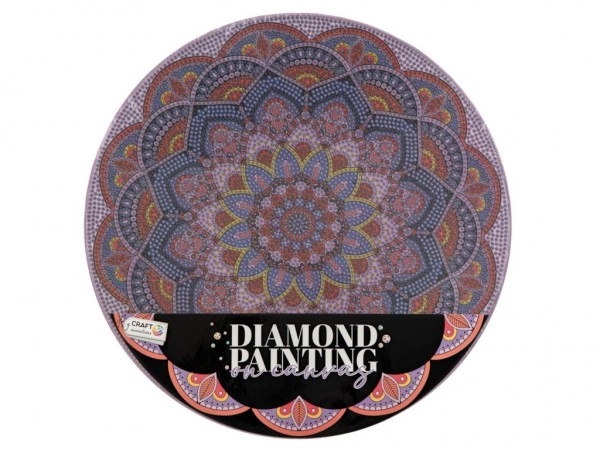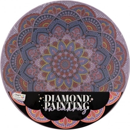 Scopri la magia della pittura a diamante con il nostro design mandala viola su tela rotonda di diametro 30 cm.
