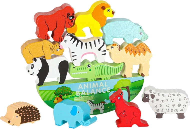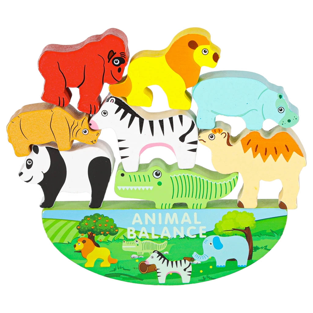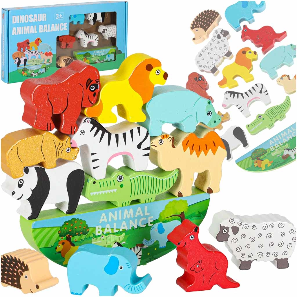 Questo colorato gioco di equilibrio in legno conquisterà ogni bambino. Il compito è posizionare gli animaletti uno sopra l’altro e trovare combinazioni stabili sulla base oscillante. I bambini allenano così motricità fine, pazienza e ragionamento logico, mentre scoprono forme e colori degli animali della savana.