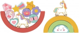 Tutti i blocchi sono realizzati in legno con certificazione FSC, garantendo un approvvigionamento sostenibile dei materiali. Il giocattolo non solo offre divertimento, ma sviluppa anche la motricit9 fine, aiutando le piccole mani a imparare a assemblare varie forme.
