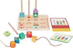 Contiene diversi tipi di carte che permettono variabilità nel gioco - i bambini possono posizionare le forme secondo la propria fantasia o secondo i disegni previsti sulle carte. Se una carta non soddisfa, può sempre essere sostituita con un'altra!