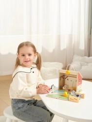 Realizzato in legno certificato FSC®, garantendo il rispetto per l'ambiente. La pratica maniglia permette un facile trasporto e, grazie ai colori vivaci combinati con il legno naturale, il maneggio è un'eccellente estetica per ogni stanza dei bambini.