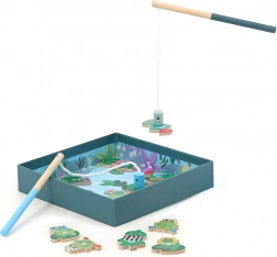 Il contenuto della confezione include 12 rane magnetiche in legno, 2 canne in legno con magnete e 1 scatola/base di gioco. Questo gioco può essere giocato dai 2 anni ed è ideale per 2 giocatori.