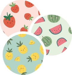 Il set comprende tre valigette di diverse dimensioni, facilmente impilabili una dentro l'altra. Ogni valigetta è decorata con motivi di frutta succosa come anguria, ananas e fragole, portando un tocco di magia nell'ambiente dei bambini.