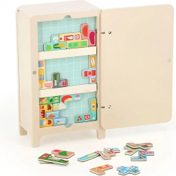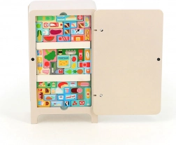 Il gioco con design di Ingela P. Arrhenius include un frigorifero in legno, due scaffali magnetici e 21 magneti alimentari. I bambini possono creare le proprie disposizioni del frigorifero, il che stimola la loro creatività e capacità di risoluzione dei problemi. Il libretto istruzioni offre 7 soluzioni diverse.