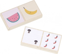 Questo domino splendidamente illustrato da Sarah Betz è non solo divertente ma anche educativo. I bambini imparano a riconoscere e abbinare diversi tipi di frutta e verdura.