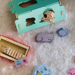 Scoprite la pittoresca casetta in legno di Sarah Betz con animali inseribili come cagnolino, topolino, gattino e coniglio. Questo giocattolo ispirato al metodo Montessori favorisce la destrezza, la coordinazione e la creatività del bambino.
