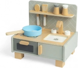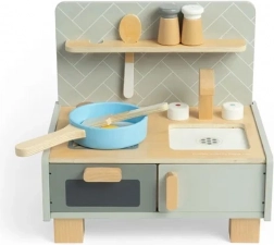Il design compatto in colori neutri e delicati si adatta perfettamente a qualsiasi stanza dei bambini o sala giochi. È realizzata in legno certificato FSC® e colorata con vernici non tossiche, garantendo un divertimento sicuro e sostenibile per i bambini dai 3 anni in su. Oltre al divertimento, questa cucina promuove lo sviluppo dell'immaginazione e della fantasia mentre i bambini imitano i ruoli in cucina.