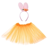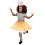 Include un tutù arancione e un cerchietto con orecchie e carota.