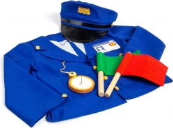 - Contenuto del pacchetto: giacca blu foderata, cappello, orologio da tasca, targhetta, 2 bandiere di segnalazione (rossa e verde)