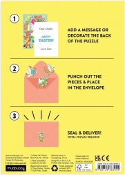 Offriamo un unico puzzle da 12 pezzi del formato di una cartolina che incanterà non solo i bambini dai tre anni in su. È un modo interessante per inviare i tuoi auguri pasquali. Da un lato puoi godere di una bellissima illustrazione delle festività primaverili e dall'altro hai lo spazio per scrivere il tuo personale augurio pasquale.