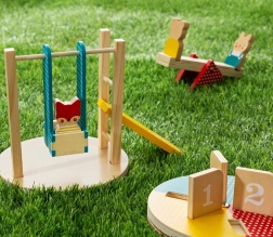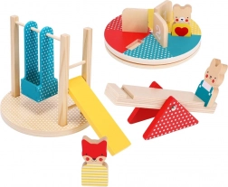 Prepara i tuoi bambini per momenti indimenticabili nel parco giochi con questo set di legno. Include tre figure animali che prendono vita in un parco giochi pieno di fantasia:
