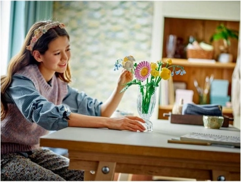 Una volta montato, otterrai una decorazione stilosa in mattoncini per soggiorno, camera da letto o ufficio. Il set si può combinare con altri set LEGO Botanicals, così potrai creare nel tempo le tue composizioni floreali senza annaffiature e senza caduta di petali.