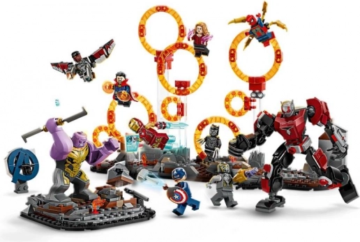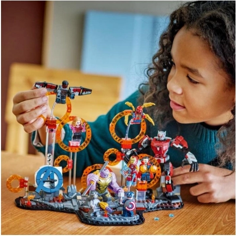 Rivivi la battaglia culminante del film MARVEL Studios Avengers: Endgame. Il set include nove minifigure: Capitan America (con scudo), IRON MAN MK85 (con spada e scudo), CHITAURI (con cannone a spalla), ANT-MAN, SCARLET WITCH (con elementi effetto), DOCTOR STRANGE, IRON SPIDER (con 4 arti mobili sulla schiena), BLACK PANTHER e FALCON (con due shooter) – oltre alla grande figura di THANOS e al mech di Ant-Man completamente snodabile.