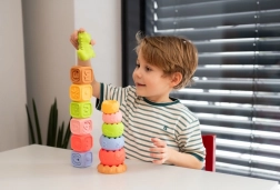 Questa costruzione montessori e piramide sensoriale è la scelta perfetta per i genitori che vogliono coinvolgere i loro bambini in un gioco interattivo e sensoriale. Grazie al materiale sicuro e non tossico, questi giocattoli sono ideali non solo per giocare, ma anche per il bagno, perché non hanno aperture che consentano l'accumulo di acqua al loro interno. Altri vantaggi includono: