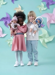 La testa e gli arti sono realizzati in morbido vinile di alta qualità, conferendo un aspetto realistico. Togliendo il ciuccio dalla bocca, la bambola dice "mamma", "papà" e emette il suono di un bambino che piange, che può essere calmato con il ciuccio magnetico.