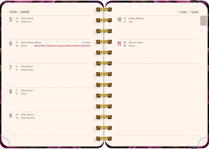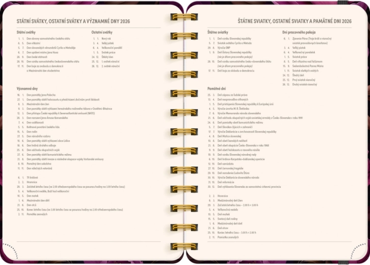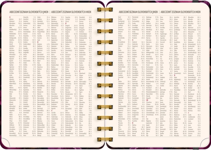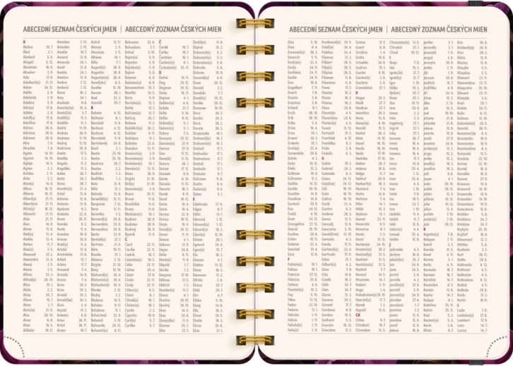 - Include un elenco di nomi cechi e slovacchi con le festività.