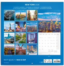 Scopri il fascino di New York con il nostro calendario per appunti per l'anno 2026. Questo calendario contiene dodici straordinarie fotografie della vibrante città insieme a un calendario in sei lingue, che include le fasi lunari e le feste importanti.