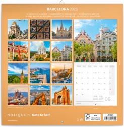 Calendario murale Barcellona 2026 porta un pezzo di Catalogna nella tua casa. Include dodici fotografie di qualità di Barcellona con un pratico calendario in sei lingue.