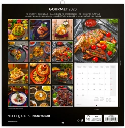 Il calendario Gourmet 2026 non solo offre belle foto di cibi, ma anche funzioni pratiche. Contiene un calendario multilingue, utile per tutti. Troverai qui fasi lunari mensili, feste importanti e uno spazio per le tue note, che ti permetterà di organizzare meglio il tuo tempo.