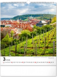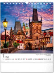 Calendario da parete Praga 2026 offre splendide vedute della storica e culturalmente ricca città di Praga, evidenziata da dodici fotografie mozzafiato. Parte del calendario è un calendario chiaro, che non disturba l'estetica delle immagini.