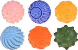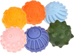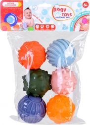 Ognuna delle sei palline ha una forma e una struttura diversa e varie sporgenze stimolano i sensi tattili e supportano lo sviluppo dei recettori sensoriali. Questo aiuta nello sviluppo della coordinazione e delle abilità tattili dei bambini.