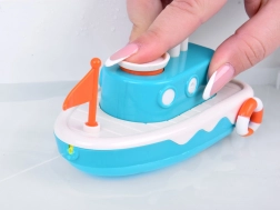 Questa barca per bambini offre un'esperienza interattiva con un pulsante che rilascia acqua per aumentare il divertimento durante il bagno.