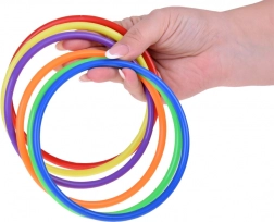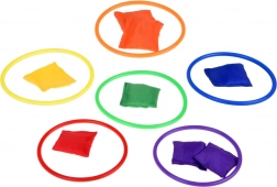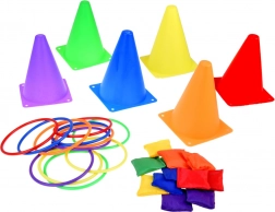 Questo set da gioco è ideale per i bambini che amano trascorrere il tempo in modo attivo. Include sei coni colorati, dodici sacchetti di stoffa e dodici cerchi di plastica che permettono diversi tipi di giochi. I bambini possono migliorare la loro coordinazione e precisione nel lanciare e mirare.