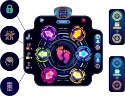 Questo tappetino è progettato per divertire sia bambini che adulti che vogliono mostrare le loro abilità di ballo. Il design attraente in colori scuri attira tutti. È adatto per allenare coordinazione, riflessi e forma fisica.
