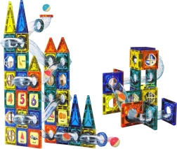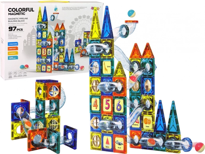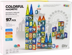 I cubetti magnetici sono un set innovativo che offre innumerevoli possibilità per il divertimento creativo dei bambini. Il set include cubetti di varie forme in quattro colori (arancione, giallo, blu scuro, verde) per costruire il castello e la pista per biglie.