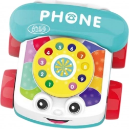 Il telefono è dotato di un quadrante rotante, elementi colorati e un volto sorridente, che invitano il bambino all'interazione e alla scoperta del mondo dei suoni, delle forme e del movimento. Le parti mobili, come il quadrante o le ruote, stimolano la curiosità del bambino e incoraggiano un'esplorazione attiva.