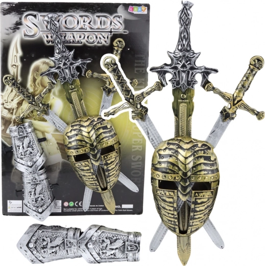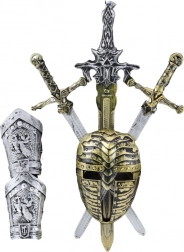 Con questo set da cavaliere i bambini possono diventare intrepidi guerrieri. Grazie alla maschera stilizzata ottengono un aspetto da cavaliere e si sentiranno come nel medioevo. Il set comprende tre spade di diverse dimensioni, una maschera decorativa e due protezioni per le mani che conferiscono uno stile da cavaliere realistico al look complessivo.