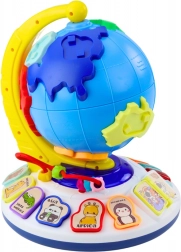 Il globo interattivo ha sulla sua superficie 7 blocchi colorati che rappresentano i continenti con immagini di animali amichevoli. Posizionando il blocco nel punto giusto, il bambino sentirà il nome del continente, il nome dell'animale e un suono realistico, che è un ottimo modo per imparare la geografia.