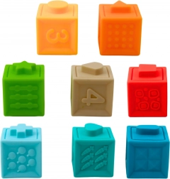 Giocare con i cubetti supporta lo sviluppo della motricità fine, la coordinazione mano-occhio, la concentrazione e la memoria. Il bambino impara gradualmente a riconoscere i colori di base, i numeri e le forme semplici attraverso i colori e i motivi. Grazie alle loro dimensioni compatte, i cubetti sono ideali non solo per giocare a casa, ma anche in viaggio – si mantengono facilmente puliti e sono comodi da trasportare.