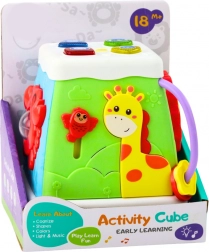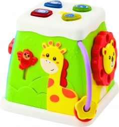 Cubo educativo interattivo fornisce un divertimento sicuro per il vostro bambino. Ogni lato del cubo offre un'attività diversa che corrisponde alla fase di sviluppo del bambino e aiuta ad allenarsi nelle abilità motorie, nella coordinazione visiva e motoria e nel pensiero logico.