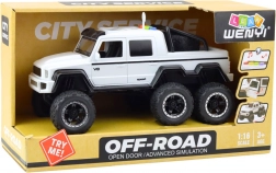 Il modello ha 6 ruote massicce con pneumatici scanalati che aumentano la sua stabilità e gli permettono di superare piccoli ostacoli. Sul tetto ci sono quattro pulsanti che attivano gli effetti sonori: suoni di avviamento del motore, clacson, retromarcia, sirena e telecomando. Inoltre, ha porte apribili che aumentano il livello di interazione e realismo del gioco.