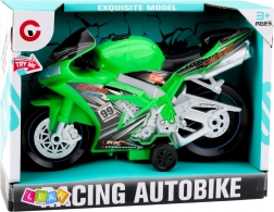 Moto da corsa con effetti luminosi e sonori, giocattolo verde