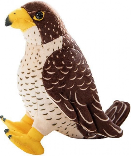 Il falco di peluche è realizzato in peluche morbido in tonalità naturali di marrone, beige e giallo, conferendogli un aspetto molto realistico. I dettagli accuratamente elaborati, come il becco ricurvo, gli artigli affilati e le ali stampate, insieme agli occhi espressivi e vivaci, fanno di questa mascotte una miniatura di un uccello rapace che è allo stesso tempo amichevole e sicura per i bambini.