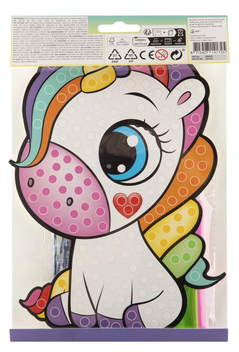 Crea un magnifico quadro di diamante di un unicorno con il nostro set creativo di pittura diamante. Questo set A5 include grandi pietre XL che donano un luccichio unico alle tue opere.