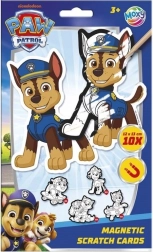 Illumina la cameretta o il frigorifero! Questo set creativo a tema Paw Patrol permette ai bambini di rivelare, grattando, i colori vivaci sotto lo strato nero e creare magneti unici. Ogni immagine si trasforma facilmente in un magnete da applicare su frigorifero, lavagna o altre superfici metalliche.