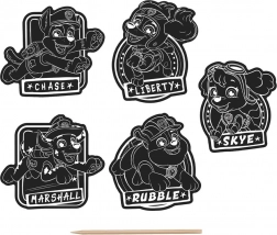 Crea la tua collezione di adesivi con i motivi di PAW PATROL. Basta grattare delicatamente lo strato nero per rivelare gradualmente i colori vivaci e i dettagli dei singoli personaggi. I motivi finiti sono autoadesivi, quindi puoi usarli subito per decorare materiale scolastico, regali o bigliettini.