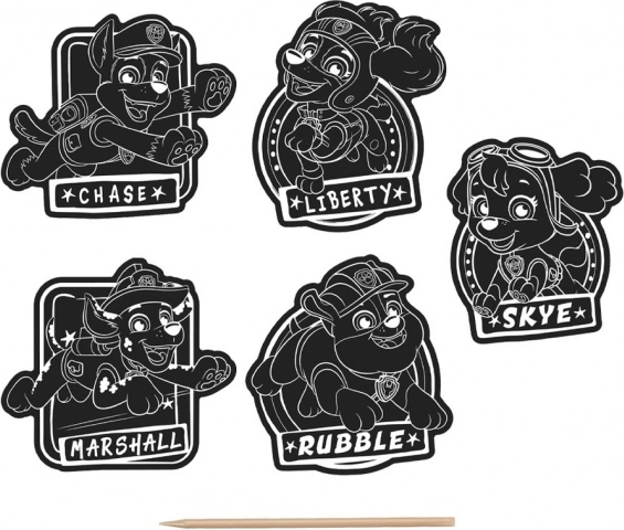 Scopri un divertimento creativo con gli amati eroi di PAW PATROL. Con l’aiuto dello strumento da grattare rivelerai motivi colorati nascosti sotto lo strato nero e le immagini finite potrai facilmente usarle come adesivi per quaderni, regali o biglietti. La confezione contiene 5 pezzi di adesivi.