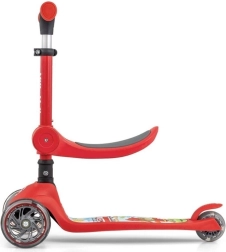 Questo monopattino combina idealmente divertimento e funzionalità, supportando lo sviluppo fisico e la coordinazione dei movimenti. Ha due ruote di silicone luminose davanti che garantiscono stabilità ed equilibrio. La piattaforma antiscivolo e il freno della ruota posteriore aumentano la sicurezza durante la guida.