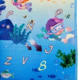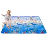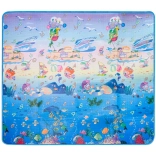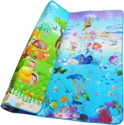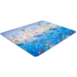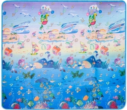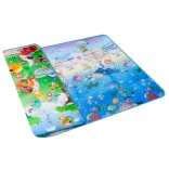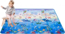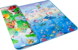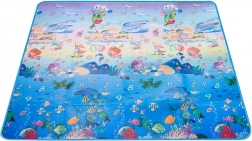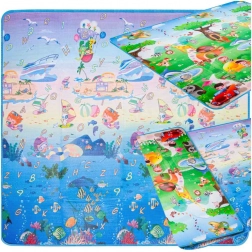 Tappetino da gioco in schiuma bifacciale per bambini che offre uno spazio morbido e sicuro per giocare e imparare. Un lato raffigura il mondo marino con lettere e numeri, l’altro un’allegra zoo. Il tappetino isola dal freddo, attutisce le cadute e si pulisce facilmente: basta passare un panno umido.
