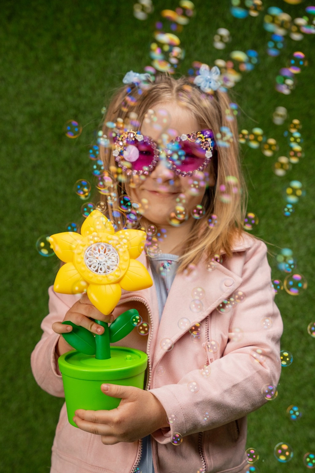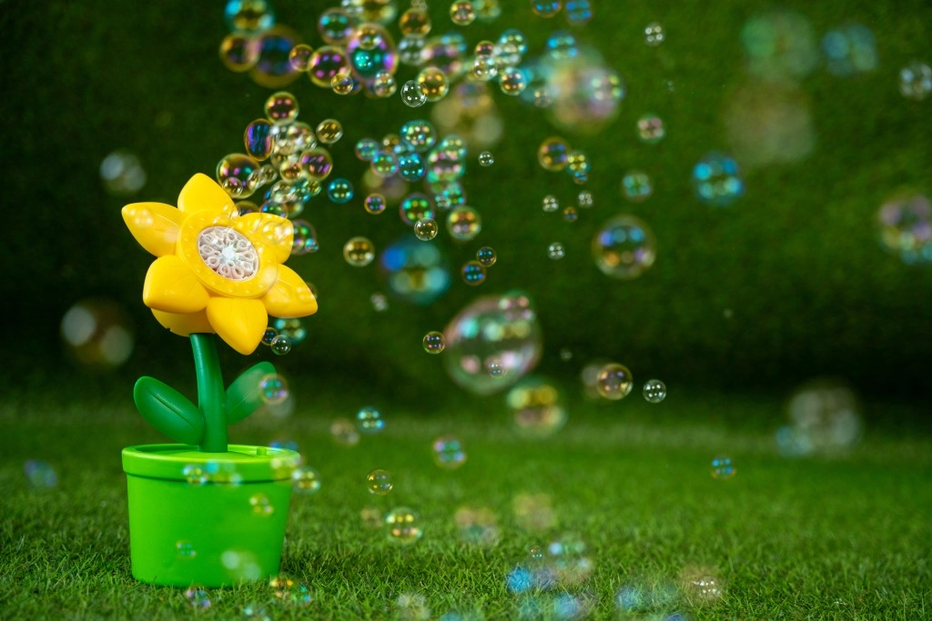 Questa macchina per bolle a fiore trasforma ogni pomeriggio in giardino in uno spettacolo da fiaba. Versa la soluzione, accendi e in un attimo compariranno decine di scintillanti bolle, che i bambini adorano inseguire e scoppiare. Il design compatto a vaso è stabile e facile da trasportare.